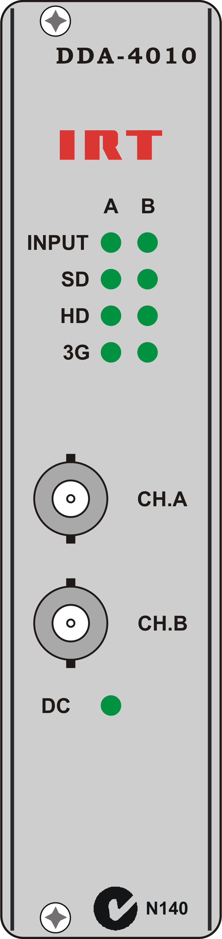 Suitable for mounting in IRT 19" rack chassis with input, output and power connections on the rear panel. |