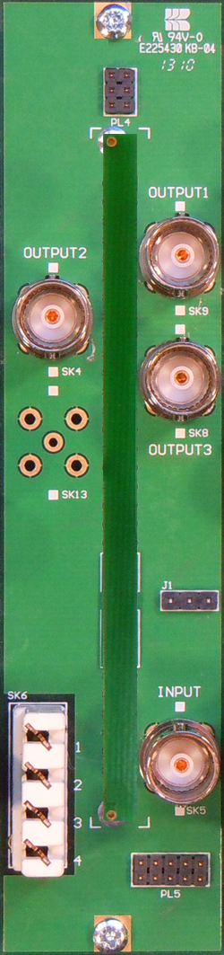 3 switched, regenerated, reclocked outputs located on rear connection assembly and one located on front panel. |